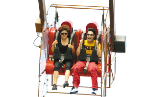 沖上云霄、過山車、大擺錘……小沈陽一共玩了八個項目,全是主題公園里最考驗人膽量的游樂項目。但小沈陽完全不放在眼里,他挑選了過山車的第一排坐;而坐在海盜船上的時候,他卻又挑了最后一排,甚至在海盜船擺蕩至最高處的時候,他竟然拉開了安全擋桿,站了起來大喊大叫,“完全玩瘋了,倒是下面的游客被他嚇得半死。”陪同的楊小姐說:“他告訴我,他很喜歡去游樂園玩,最喜歡迪斯尼。”小沈陽最后還對龍門陣提了意見:“他說玩得挺盡興的,不過與迪斯尼相比,還是要多多努力。”