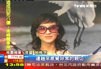 據(jù)臺(tái)灣TVBS報(bào)道,大墨鏡、白洋裝,港星趙雅芝跟著丈夫,一塊搭機(jī)抵達(dá)臺(tái)灣。趙雅芝表示:“很高興又來(lái)到臺(tái)灣,跟大家見(jiàn)面。”