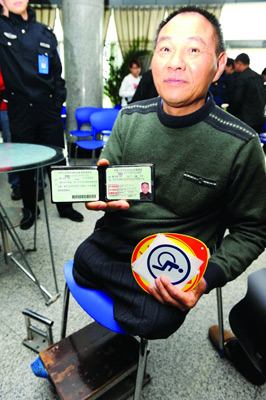 曹前明考試合格的信息同步傳回車管所,曹前明很快拿到全國第一個C5駕照。11點47分,車管所副所長將駕照交到曹前明手中,曹前明說:“我再也不用‘賊眉賊眼’地開車了。”