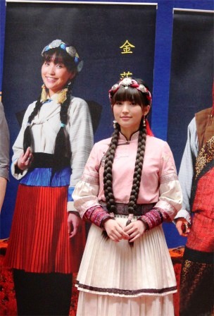《香格里拉》是歌壇四小天后金莎繼《神話》之后又一次接觸影視劇,對(duì)于自己首次出演少數(shù)民族角色,金莎絲毫不敢怠慢;為了達(dá)到最佳效果,金莎甚至不惜代價(jià)自掏腰包制裝,力求最完美的自己。金莎告訴記者,為了今天的這場(chǎng)發(fā)布會(huì)自己連夜找了服裝設(shè)計(jì)師趕制了這套少數(shù)民族服裝,為的就是提前感受一下香格里拉的人文氣息。的確,金莎今天的這套服裝著實(shí)吸引了不少媒體的閃光燈,搶鏡成功。不過(guò)比起演員出身的胡歌來(lái)說(shuō),金莎則稍顯遜色。