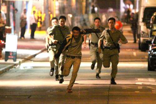 據悉,林超賢指霆鋒在戲中駕駛的只是普通車,并非跑車或是戰車,不過前晚劇組安排了十多位臨時演員拍攝追斬戲份。期間,不少路人拿出相機及手機拍攝,甚至不惜爬高拍照。留了胡子的謝霆鋒則于凌晨十二時許到場,現場有真警察維持秩序,霆鋒拍攝時顯得相當投入,走位前在街口試位,也用對講機與工作人員溝通,指手畫腳。至于桂綸鎂為配合戲中賭徒角色,頭發染了少許紅色,衣著也有少許性感露出小蠻腰。她與謝霆鋒在街頭來回跑了四次,每段路距離甚長。當謝霆鋒不用走位時,也特意在旁邊休息,吸煙及吃宵夜,期間,有外籍游客行過問路,霆鋒也指點對方,并叫記者及游人拍照時要小心一點,說:“兄弟,不要開閃光燈。”生怕影響拍攝進度。