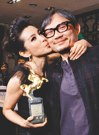 中新網11月30日電 李冰冰以《風聲》封后,從唱名到領獎一路哭,直到昨天凌晨的慶功宴上,還直說:“好像在作夢”。意外與驚喜,竟然忘了在臺上感謝爸媽,下臺趕緊打電話到北京,拿獎當天剛好是李爸爸農歷生日,李冰冰說要把獎送給爸當生日禮物,李爸爸只說“女兒,拿得不容易啊!闭f著李冰冰又紅了眼眶。片中剝光李冰冰衣服凌虐她的黃曉明,發簡訊祝賀李冰冰獲獎,和李冰冰鬧說“你在臺上都沒謝我,我傷心”。