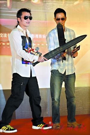 當(dāng)日,謝霆鋒第二次成為爸爸,他承認(rèn)自己現(xiàn)在心情大好,拍喜劇片正適合。二人在現(xiàn)場(chǎng)也擺開(kāi)架勢(shì)比賽拔劍速度,兩人戲中有不少對(duì)打戲份,而家輝透露戲里,謝霆鋒武功高強(qiáng),“他的責(zé)任就在打,我的責(zé)任在搞”。張家輝更笑指謝霆鋒:“他生孩子很有本事。”