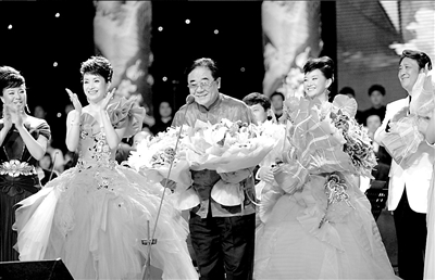 昨晚,金鐵霖的30多位學生輪流獻唱。呂繼宏的《咱老百姓》、劉斌的《當兵的人》、閻維文的《小白楊》、張也的《走進新時代》、董文華的《今天是你的生日,中國》等,都有極高的人氣。吳碧霞演唱的歌劇《康蒂德》選段《紙醉金迷》是演出的一大亮點,除了聲音極富穿透力,吳碧霞在臺上的表演非常出彩,將角色哭與笑、苦與樂的矛盾表現得淋漓盡致。壓軸出場的宋祖英演唱了《茉莉花》和《愛我中華》。記者許青紅