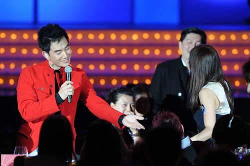 中新網(wǎng)2月22日電 任賢齊年初七在澳門舉行“任賢齊星級晚宴演唱會”,邀請了陳冠希愛將農(nóng)夫擔任表演嘉賓,關(guān)心妍與老公楊長智前來捧場。小齊在臺上不忘向觀眾拜年及大派禮物,其后走到臺下四處獻吻及任攬任抱,事后任賢齊笑言感覺很幸福。