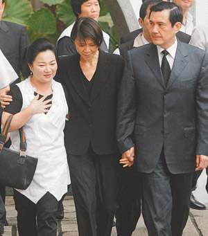 白冰冰(左)出面接待前去吊唁的馬英九夫婦。