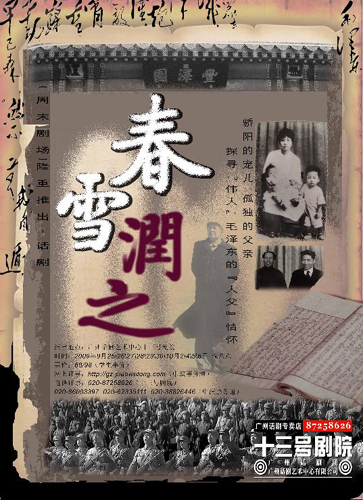 中新網(wǎng)廣州9月25日電 (記者 索有為) 毛澤東,驕陽的寵兒,孤獨(dú)的父親。由廣州話劇藝術(shù)中心出品的“建國大戲”——《春雪潤(rùn)之》將于今日晚在廣州十三號(hào)劇院面向公眾上演,用全新視角探尋偉人毛澤東的人父情懷、講述毛澤東的舐犢之情。