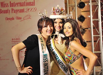 28日晚,第49屆國(guó)際小姐世界大會(huì)全球總決賽在成都舉行,來自全球66個(gè)國(guó)家和地區(qū)的國(guó)際小姐決戰(zhàn)“美麗之巔”,經(jīng)過兩個(gè)半小時(shí),5個(gè)環(huán)節(jié)的比賽,最終冠軍皇冠戴在了墨西哥小姐阿娜加布列娜-埃斯皮諾薩頭上,韓國(guó)小姐、英國(guó)小姐分獲亞軍和季軍。由本報(bào)在內(nèi)的全國(guó)15家主流紙媒代表組成了媒體評(píng)委團(tuán),評(píng)選出6個(gè)單項(xiàng)獎(jiǎng)。中國(guó)香港小姐獲得了最佳媒體風(fēng)采獎(jiǎng)。來自中國(guó)內(nèi)地的王芊未進(jìn)15強(qiáng),捧走了“最佳友情獎(jiǎng)”。“最佳上鏡獎(jiǎng)”和“手機(jī)短信大獎(jiǎng)”則分別頒給了來自韓國(guó)和美國(guó)的選手。