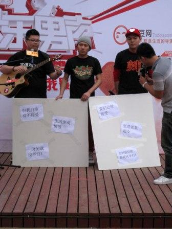 今年快男注定與眾不同,不僅“偽娘”選手備受關注,而且連“反偽娘”選手也不失風采,上周快男土豆網分賽區一組特殊選手C-BLOCK組合因在比賽現場打出 “保護純爺們 消滅偽娘族”的參賽口號,而備受網友關注并被封為“反偽娘斗士”,而有關這場“偽娘”與“反偽娘”的對決,昨日舞美師在博客爆出猛料:“著姐入圍前三甲不是問題,首先是因為吸引眼球的需要,這也是湖南衛視選秀常用手段;不僅如此,劉著也已經秘密簽約湖南衛視旗下長沙天娛公司”。而針對舞美師的爆料內容,記者也從網上了解到該組合相關資料,首先該C-BLOCK組合來自長沙,在當地一直小有名氣,實力不俗,去年多次參加湖南衛視王牌節目《快樂大本營》、《成年禮》、《8090》等節目,而關于“偽娘”劉著網上開始有人爆出其與湖南衛視關系甚密,這些相關信息與舞美師爆料內容十分契合。為進一步求證舞美師的爆料內容,記者向湖南衛視快男導演組一編導求證,他表示:“不要相信舞美師博客內容,純屬造謠,快男比賽保證公平選拔”! 漪