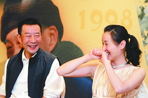 雖然在開播會上不承認“老少配”,但李雪健和吳越搭戲談戀愛成夫妻對觀眾來說還是很新鮮。本報記者 郭延冰 攝