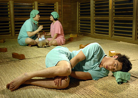 據(jù)韓國(guó)《中央日?qǐng)?bào)》報(bào)道,神童和金信瑛在《賢內(nèi)助女王》中出演了一對(duì)在桑拿房公共場(chǎng)合不顧禮儀夸張地相互示愛(ài)的情侶。這對(duì)情侶讓被從家里趕出來(lái)孤單的躺在桑拿房的崔哲鎬(音)的內(nèi)心無(wú)比郁悶。崔哲鎬(音)被妻子趕出家門(mén)后為了平靜心情去了桑拿房,但是被神童和金信瑛這對(duì)情侶咋咋呼呼夸張的行動(dòng)弄得郁悶不已。電視劇滑稽地表現(xiàn)了崔哲鎬煩躁郁悶的形象。