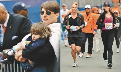 凱蒂現身馬拉松路跑 阿湯哥抱愛女甜蜜獻吻(圖)