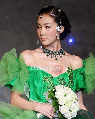 中新網11月27日電 據朝鮮日報報道,26日在首爾漢南洞凱悅大酒店大舞廳舉行的安德烈-金“2007聯合國兒童基金會后援之夜”特別服裝秀上,崔智友作為模特登臺走秀,展示高雅純潔的美麗。
