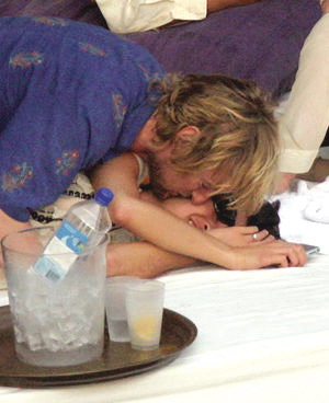 他近日和好友度假時(shí)似乎已看不到此前“自殺傾向”的陰影,不時(shí)與同行的女伴調(diào)笑、玩鬧,并在眾目下一親美女芳澤,毫不遮掩。