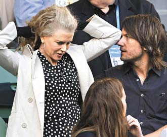 據臺灣聯合報報道,澳洲兩個地方昨天都高唱媽媽樂,懷孕中的妮可和老公凱斯去看澳洲網球公開賽,妮可身穿圓點碎花洋裝,但小腹明顯微隆,和凱斯不時交頭接耳,笑得燦爛甜蜜。