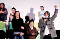 一位星爺的男粉絲公開“指責”星爺從演員到導演的轉型并不是很成功,“我為您設計了一個更有創意的方案,希望您能看一下。”星爺連忙讓工作人員把方案遞到臺上,看完驚呼,“原來是劇本,為什么不早點給我?”而更令星爺意外的是接下來一個男觀眾要當場向女友求婚,并請星爺當證婚人。星爺估計也被這陣勢嚇了一跳,一時間不知作何回答。不過隨后星爺還是按照程序履行了自己的義務,還現場解下圍巾當作禮物,張雨綺也摘下項鏈送給這對大膽的情侶。徐嬌自稱很窮沒禮物可送,但即興表演了一段倫巴,有模有樣的舞姿不僅引得干爹星爺開心大笑,還博得了所有觀眾的掌聲。一場影迷見面會基本成為一個求婚儀式,星爺也從絕對的主角暫時淪為配角。至于那位“女朋友”,她在臺上幸福得滿眼淚花,說不出話來,在星夜和觀眾的“起哄”聲中,接受了男朋友送的玫瑰。(記者 馮遐)