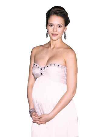 阿爾芭挺著大肚更見優(yōu)雅孕味 宣傳《見鬼》(圖)