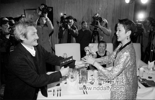 當天,現場三位女主角齊齊將收到的金玫瑰送給徐克。徐克卻忽然走下舞臺,穿過前面的數十位記者,走向坐在臺下觀眾席上的施南生身邊,連同自己手上的金玫瑰,向施南生獻上了4朵金玫瑰,而且當眾深情地對施南生說“金玫瑰當然要給最好的女人,你永遠是最好的女人。”這番話顯然讓施南生頗為感動和驚喜,她捧著金玫瑰,不由眼泛淚花。