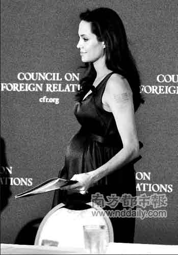美國時間8日,盛傳懷雙胞胎的安吉莉娜·茱莉現身華盛頓,參加一個關于“沖突中的伊拉克、教育及兒童”的討論會。雖然她和配偶皮特一直沒有承認再次懷孕,但是茱莉高高隆起的腹部使懷孕一事已毋庸置疑。