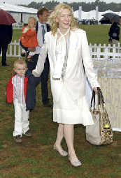 凱特·布蘭切特1992年畢業于澳大利亞國立藝術戲劇學院,因在電影《伊麗莎白》中扮演英國女王伊麗莎白一世而一舉成名。現年38歲的布蘭切特與身為編劇和戲劇導演的丈夫安德魯·厄普頓之前育有兩個兒子,分別是6歲的達希爾和3歲的羅曼。上周日,布蘭切特在悉尼生下兒子伊格納修斯·厄普頓,在布蘭切特和丈夫同時任藝術總監的悉尼劇院任公關經理的蒂姆·麥凱奧作為布蘭切特的發言人宣布了這一消息,并透露:“母子平安,一家人其樂融融。新生兒重達3.6千克。”喜訊傳出后,澳大利亞總理陸克文于第一時間發去賀電,祝賀這對夫婦第三度得子。