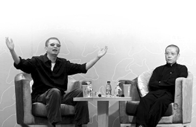 昨天的這個(gè)論壇雖是王家衛(wèi)主持,但是他幾乎把所有時(shí)間留給陳丹青,自稱自己欽佩陳丹青多年,甘當(dāng)配角。但是陳丹青卻一點(diǎn)也不給他面子。兩位大師一上臺(tái),記者們就紛紛拍照,閃光燈閃成一片。誰料,陳丹青剛跟大家問過好,就指著王家衛(wèi)說:“我是被他綁架來的。”他接著訴苦道,“坐在這臺(tái)子上,我不能抽煙。我一不抽煙智商就下降一半。雖然我知道抽煙不好。現(xiàn)在你們還不停拍我,我都快說不出話來了。”談了一會(huì),陳丹青突然又來了句:“今天我好倒霉,先是被綁架來,現(xiàn)在發(fā)現(xiàn)襪子沒穿好,襪子幫太短,我不能把腿蹺著坐,老這樣端端正正地坐著,真累!”
