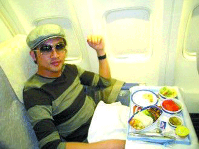 蘇有朋直航包機上享用美食。