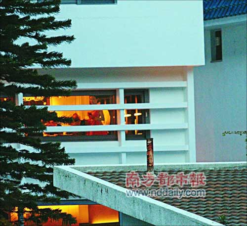 偉仔與嘉玲8月9日在家中舉行新婚派對,嘉玲將頭發(fā)盤起,穿上桃紅色大露背低胸晚裝倍感迷人。當(dāng)日看到很多賓客盛裝赴會,據(jù)悉有張學(xué)友夫婦、劉德華(華仔)及其他圈內(nèi)外好友。華仔8日晚才結(jié)束北京奧運(yùn)會開幕式的表演,隨即趕回港出席派對。8月9日傍晚時分,已見身穿桃紅大露背晚裝的嘉玲在家中招呼賓客,每個人手上都拿著紅酒把酒言歡,不時在屋內(nèi)游走,大家都很享受這種自由派對的無拘無束。只是后來偉仔發(fā)現(xiàn)記者遠(yuǎn)距離拍攝屋內(nèi)情況,就走到窗前將窗簾拉上,但無礙他們的興致。他們一直在狂歡,以致守在花園門外的記者也不時聽到他們傳來的笑聲。