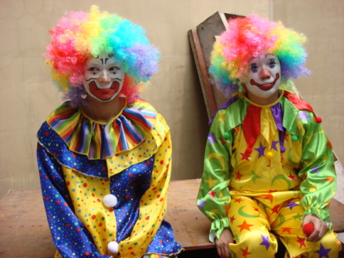 中新網(wǎng)8月14日電 據(jù)香港《太陽報》報道,張智霖日前在博客上公開幾張化上小丑妝的有趣相,第一張相是他戴著爆炸頭假發(fā),忙于白面上加色樣,而第二、三張相則是完成小丑妝,同小丑朋友合照,z中間還有一張是小丑張智霖拿著攝影機扮導演,可能他覺得張相太完美,故文字只得寥寥幾句:“我是一個演員,也是…一個小丑。”