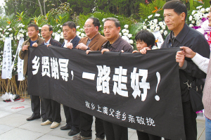 “鄉賢謝導,一路走好!”昨日,為送謝晉最后一程,謝晉家鄉——上虞的父老鄉親們也專程派代表來到上海。“謝晉是我們的驕傲,他一生都在用電影為底層人民說話。現在他走了,但我們一定會把他的電影夢想繼續下去。”這位謝晉的老鄉說。