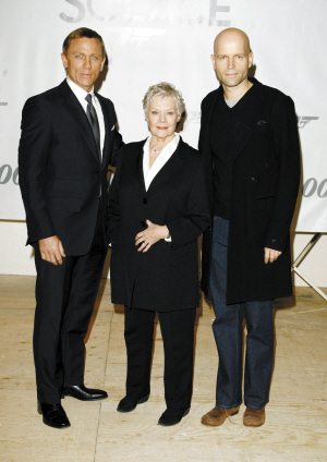 導演弗斯特(右)與朱迪·丹奇(中)、丹尼爾·克雷格