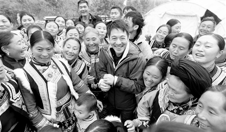 當天,李連杰還走訪了茂縣境內的羌繡技藝培訓基地,之后,他又繼續趕往綜渠鄉的羌繡幫扶點,探望那里的繡女朱召應。朱召應和丈夫在汶川大地震中雙雙受傷,她的脊柱受損不能站立,她的兒女又有殘疾,生活非常艱難,后來朱召應加入羌族婦女就業幫扶計劃,每天埋頭做羌繡,生活有了很大改善。李連杰在她居住的帳篷里,不斷鼓勵這個坐在輪椅上的堅強女性,“你一定要繼續加油,總會慢慢好起來的。”離開茂縣之前,有人把剛剛收到的一條新聞短信拿給李連杰看,原來這是本報“華西手機報”發出的一條新聞,正是轉載昨日本報的報道《慈善大俠李連杰來到咱羌寨》,李連杰看了后很是高興,不過他說:“做慈善其實并不是我一個人的事,大家一起努力才能成功,有了我們是一家人的信念,一定能戰勝困難!