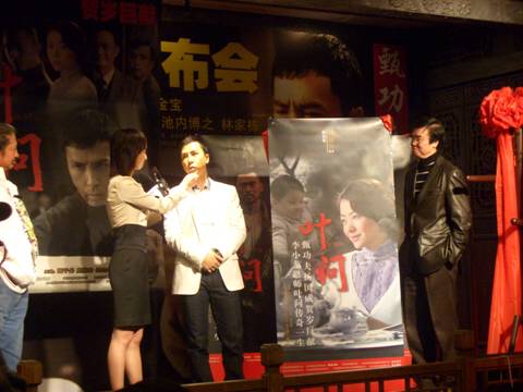 而主角甄子丹則再三強調,功夫片應以武打明星的真功夫為根本,矛頭似直指由梁朝偉飾演葉問的另一部《一代宗師》!度~問》主角甄子丹在現場表演打木人樁,極具氣勢,并獲葉準大贊能演出先父神韻。
