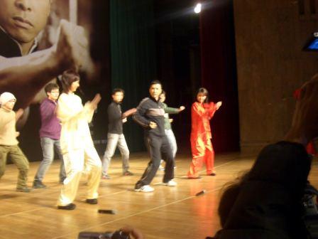 中新網11月28日電 11月27日,甄子丹來到北京大學百年講堂,為功夫賀歲片《葉問》宣傳造勢。當天正趕上甄子丹的生日,北大百名學子為甄子丹合唱生日快樂歌,場面十分溫馨。甄子丹被學生們的熱情所感動,非常開心,更擺開架勢教北大學子打起了詠春拳。甄子丹稱,“《葉問》不只是功夫片,它在展示了詠春拳魅力的同時,更發(fā)揚了一種精神,我相信那是中國人的精神。”