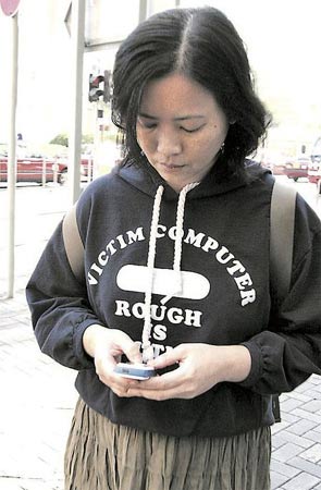 面容憔悴的藍潔瑛不斷把玩手機。圖片均來自香港《明報》