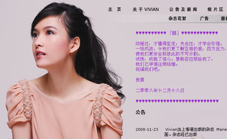 周慧敏個(gè)人官網(wǎng)貼出倪震的結(jié)婚聲明,證實(shí)婚訊。