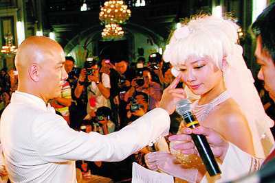 兩點四十左右,婚禮正式開始。在牧師的主持下,張衛健和張茜交換了戒指,并分別向對方宣誓將一生一世愛著對方,“這個戒指代表了我對你的愛和忠貞。”此時,一直在教堂觀禮的雙方親朋好友爆發出了歡呼聲和掌聲,而兩位新人也是激動非常,張茜更是激動得流下了幸福的淚水。在親朋好友和媒體的見證下,張衛健對張茜深情一吻,并雙雙簽署結婚證書。