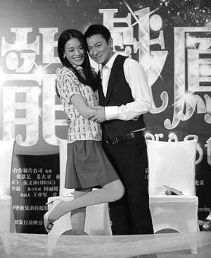 在《游龍戲鳳》中,劉德華飾演城中富豪,舒淇變身賭場(chǎng)發(fā)牌員,兩人演繹了一段浪漫情緣。這也是他們繼劉偉強(qiáng)的《衛(wèi)斯理之藍(lán)血人》后再度攜手,只不過,《藍(lán)血人》中兩人毫無感情瓜葛,但在《游龍戲鳳》中卻是專門談情說愛。昨日劉德華的右手無名指上戴著一枚戒指,和舒淇左手上的明顯是一對(duì)。對(duì)此,華仔解釋說戒指“只是片中道具”。娛樂記者們不肯輕易放過他,有人大聲問:“如果舒淇嫁給你,你會(huì)答應(yīng)嗎?”劉德華隨即把難題拋給了舒淇:“你不知道嗎?我向她求過兩次婚呢,可都被拒絕了。”不過舒淇卻眼含深情地表白道:“其實(shí)他是我們所有女人心目中最好的男人。”
