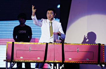 劉謙變魔術,那是他的老本行,而劉德華就純粹是客串了,但在舞臺上的一招一式,劉德華倒并不業余。第一個魔術請出了他的“女朋友 ”:“她是我今天的女朋友哦。”邊說邊摸著美女的手,“為了公平起見,我要邀請媒體朋友一起來參與。”“還有你,美女,我喜歡漂亮的……”還沒開始變魔術,之前的噱頭已擺得夠足。“將美女關在盒子里,用鋒利的刀等工具往下插,然后盒子分離,人也就此被分尸……”表演內容并不陌生,但出自華仔之手,粉絲們看得津津有味,尖叫聲不斷!華仔究竟用了多少時間學會變這個魔術的呢?“這個是秘密,不能告訴你們。”故作神秘的華仔透露說,自己曾經上過劉謙的節目,也跟他學了幾招。