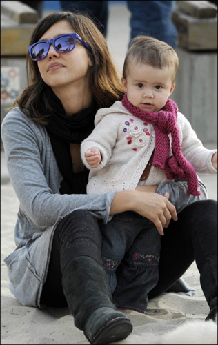漂亮媽媽杰西卡·阿爾芭帶小美妞最新照出現(xiàn)啦,今次的小美妞不帶小發(fā)卡啦,換上了粉粉紅紅的小圍巾,看來流行的風(fēng)潮又變成了小圍巾哦。而小美妞的媽媽也變得超美哦,配合小美妞的粉嫩小圍巾,換上了藍(lán)色墨鏡陪小美妞在公園玩耍,真是太幸福了。