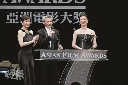 中新網3月24日電 昨天(23日),第三屆亞洲電影大獎在香港會展中心舉行頒獎典禮。林青霞穿著黑色露背晚裝亮相,為徐克、施南生(電影工作室)頒發“亞洲電影杰出貢獻大獎”。