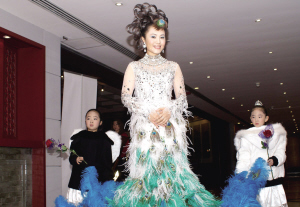 王瑩昨天以白孔雀造型亮相。她在金色大廳除了將演唱《乘著歌聲的翅膀》《小夜曲》《飲酒歌》《晴朗的一天》等西洋歌劇選段和藝術歌曲外,還將演唱《愛在天堂》《瑪依拉》等民族經典,《我愛你,中國》則成為壓軸曲目。由于獨唱會上要一口氣連唱16首歌曲,對演唱者的體力是個考驗。王瑩從幾個月前開始瘋狂增肥,除了增強營養,每天晚上都要跑3000米,她說現在連唱6小時也不覺得累。