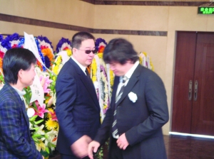 葉凡的丈夫徐希壯昨天一直表現(xiàn)得十分堅(jiān)強(qiáng),可喪妻之痛痛徹心扉,誰又能真正體會徐希壯此時的心情呢?葉凡與徐希壯是圈內(nèi)出了名的模范夫妻,徐希壯對于葉凡無微不至的照顧,一直讓葉凡生活在幸福之中。葉凡得癌癥之后,徐希壯為了不讓葉凡消沉,并沒有告訴葉凡實(shí)情,只是告訴她要好好接受治療。徐希壯一個人默默忍受了多少痛苦,我們不得而知,而他對于葉凡那種無私的愛卻讓我們無比敬重。為了掩飾自己的悲傷,徐希壯昨日特意戴上了墨鏡,一邊答謝前來參加追悼會的友人,一邊偷偷地抹去自己藏在黑色鏡片下的眼淚,在他摘下墨鏡的一瞬間,記者看見他那已經(jīng)哭得紅腫的雙眼。當(dāng)他手捧葉凡的遺像,默默地走到葉凡的遺體旁時,他深深地嘆了口氣,說道:“一路走好!”而當(dāng)他目送葉凡的遺體送往火化館時,一行眼淚順著墨鏡的邊緣慢慢地流了下來。