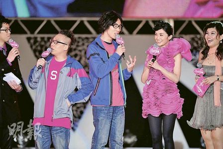 中新網1月19日電 據香港《明報》報道,第31屆“十大中文金曲”昨晚頒獎,港臺刻意搞配對噱頭,安排楊千嬅與謝安琪頒獎給容祖兒,制造3位當今樂壇天后同臺。同時,又將目前仍獨力撐Twins的蔡卓妍(阿Sa)與農夫安排一起頒獎,農夫背后老板為陳冠希,令阿Sa百般滋味在心頭。