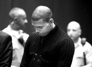 美國R&B歌手克里斯·布朗毆打女友蕾哈娜一案昨日在美國洛杉磯第二次開庭,布朗遭到兩項重罪起訴,但是向法官提出無罪抗辯。今年2月格萊美頒獎前夕,布朗和女友蕾哈娜發生爭執后大打出手,蕾哈娜臉部受傷。3月初,布朗被洛杉磯檢察院以肢體暴力可能導致他人受傷、恐嚇威脅兩項罪名起訴,如果被判有罪,布朗可能面臨4年8個月的牢獄之災。
