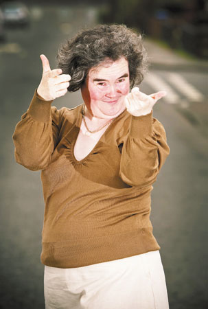 其貌不揚(yáng)的47歲英國無業(yè)大嫂蘇珊·博伊爾因?yàn)樵谟x秀節(jié)目《英國達(dá)人》中演唱了經(jīng)典的音樂劇曲目《我曾有夢》而成為全球關(guān)注的焦點(diǎn)。不僅有關(guān)她的視頻點(diǎn)擊率成倍增長,而且她還得到了黛咪·摩爾和米克·賈格爾的盛贊,就連她的偶像伊蓮·佩姬還盛情邀請她一起表演。目前,SONYBMG公司已經(jīng)給蘇珊送上了一紙合約,年底前還將給她出專輯開個(gè)唱。