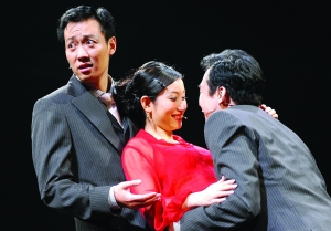 當(dāng)年,張愛(ài)玲的同名小說(shuō)被關(guān)錦鵬拍成了有些壓抑的文藝片。如今的話劇舞臺(tái)上,振保辛柏青、高虎,紅玫瑰秦海璐,白玫瑰胡靜釩用幽默的臺(tái)詞和肢體表演,令觀眾感受到喜劇色彩。比如,振保在猶豫著要不要去勾引紅玫瑰時(shí),內(nèi)心掙扎著,辛柏青說(shuō):“我要是去了,她會(huì)覺(jué)得我不是個(gè)上等男人。”高虎卻說(shuō):“你要是不去,她會(huì)覺(jué)得你不是個(gè)男人!”劇中有的橋段,甚至調(diào)侃起張愛(ài)玲來(lái)。白玫瑰拿著一本書(shū)說(shuō):“‘到男人心里去的路通過(guò)胃,到女人心里去的路通過(guò)陰道’,這是張愛(ài)玲說(shuō)的!”更絕的是,張愛(ài)玲小說(shuō)中的文字竟成了劇中振保與紅玫瑰在9年之后再次見(jiàn)面的“串詞”。