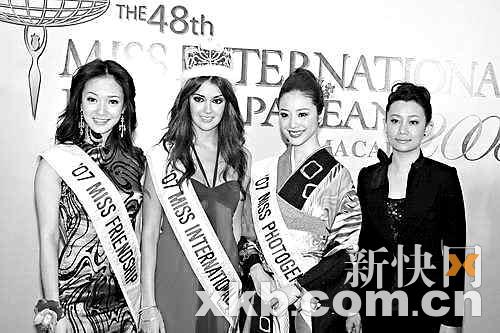 “2008國際小姐和澳門小姐”將于今年下旬舉行,昨日在澳門某酒店舉行記者會,應屆國際小姐冠軍Prisila Perales、最上鏡小姐Hisako Shirata(白田久子)和友誼小姐王君馨均有出席。