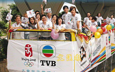 據香港“文匯報”報道,無線昨日分別在《TVB 超級合作伙伴》之EMax及MegaBox舉行“2008北京奧運會公布 TVB奧運主持陣容暨誓師儀式”活動,首先到EMax正式公布TVB北京奧運主持陣容,而出席的有鄭裕玲、陳百祥、李克勤、方力申、葉翠翠、陸詩韻、楊天經等。