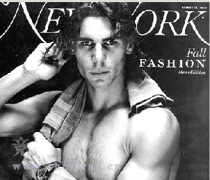 奧運會網球男子單打新科冠軍納達爾成為時尚界的新寵。他赤裸上身大展肌肉,成為即將于本月25日出版的美國時尚雜志《紐約》雜志男女雙刊男子部分的封面人物,與他對應的女子部分的封面人物則是前名模克里斯蒂·布林克利。