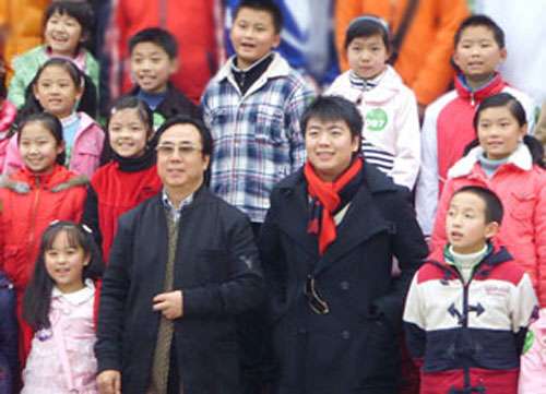 在場的不少家長還向陪同郎朗一起參加見面會的朗爸朗媽討教孩子的教育問題,朗爸幽默的語言與郎朗如出一轍,贏得家長們熱烈的掌聲。被問其朗爸如何教導孩子學習鋼琴時,郎朗幽默的搶過話筒:“他叫我練琴,自個在那兒睡覺”,朗爸不好意思的回答“那是因為他彈的曲子太好聽,把我給催眠了。”見面會長達四十五分鐘,隨后,與朗爸在廣場內與百名琴童合影留念。記者杜錦霞 王靜